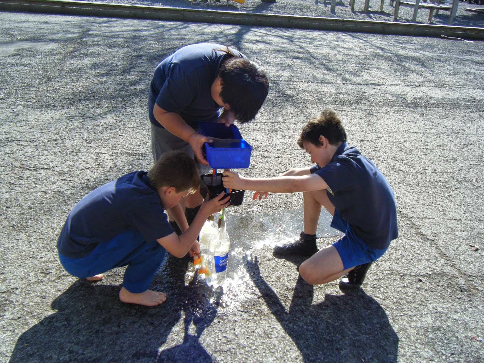 Firstly my group( da unicorns) started to make something to catch water. Miss Lynch handed out some straws and one bottle to each group. We got 3 straws per person in our group. But before we started we had a chat about what we were going to do and we made a plan. We grabbed the fizzy bottles we had put a plastic bag over it and taped it on. We poked it with a sharp pen and it made a hole in it. Then we put two straws in it and tested it out it worked. We were really happy so we put cello tape on all the straws so that they would all stick together. And that's all we had time to do. On the next day our group brought a lot of bottles and Gemma brought a bucket. I thought to myself, "OMG I think we have a little to much things". Next week on the Tuesday we tested them out I was really scared that it wasn't going to work but it did. After we tested them out we went onto the field and tipped out all of the water. We were a little angry with ours because couldn't get the water out as soon as it was in the containers.